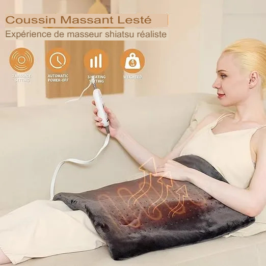 Soulagez vos douleurs rapidement grâce à ce coussin chauffant massant. Chaleur profonde, massage relaxant et confort immédiat chez vous, en un seul clic.